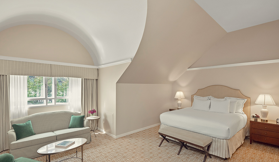 Our most elegant and spacious suite, the Stanford Suite, has been recently remodeled with the finest furnishings and touches of luxury. This suite is flooded with natural light and features a king bed, living area, dining area, desk, walk-in closet and a wet bar for crafting the perfect cocktail. The luxurious bathroom offers heated floors and a separate shower and soaking tub.